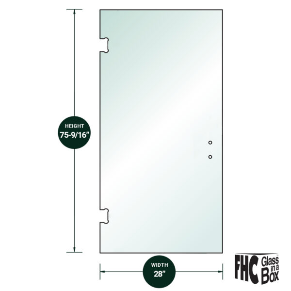 DT 3/8″ Clear Tempered Glass For Glendale/Preston SD Hinge 28″ x 75-9/16″ – Prep for 6″ CTC Handle