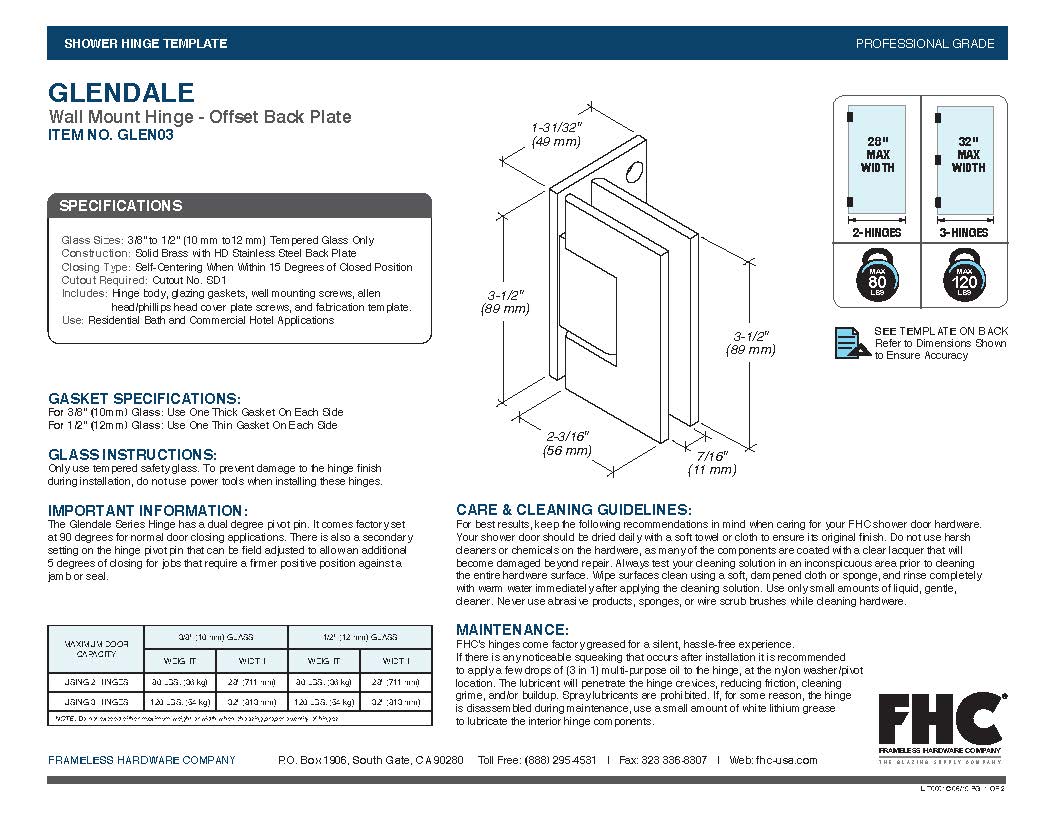 | MAXIMUM DOOR CAPACITY | 3/8″ (10 mm) GLASS Approx. 5 lb./ft² |