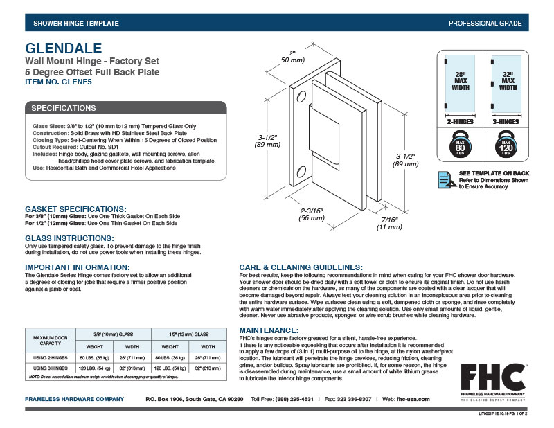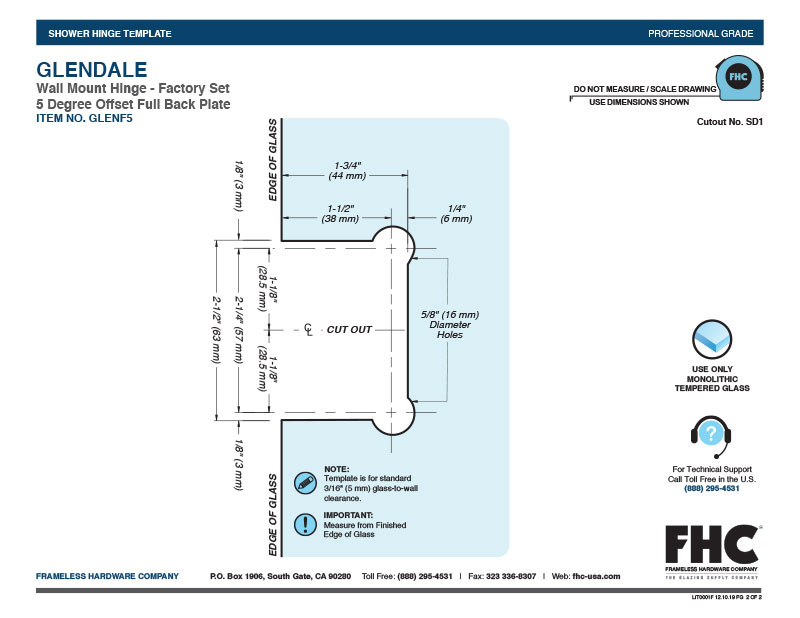 Only use tempered safety glass. To prevent damage to the hinge finish during installation, do not use power tools when installing these hinges.